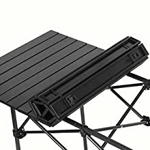 - Large Storage Space- Our camping table features a large storage mesh basket, providing convenience for storing various items like snacks, beverages, small kitchen tools, and more. When not in use, you can easily detach the mesh basket.