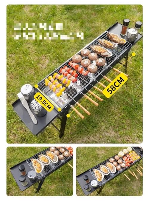 Foldable Stand Charcoal BBQ Grill Stainless Steel Portable Barbecue Grill for Outdoor Camping Garden Picnic Backyard Party- 87.5cm*30.5cm