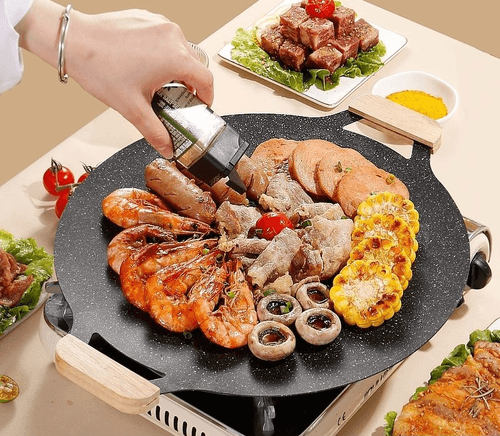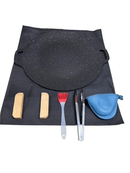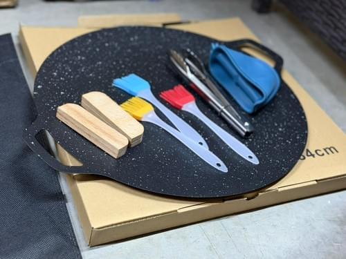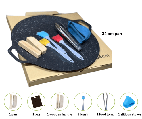 Grill pan, round stovetop pan, non-stick pan SET (34 cm) includes, gloves, handle, brush, tong, bag