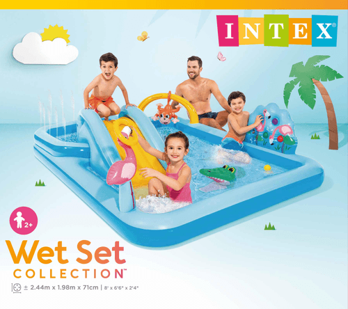 "Keep your kids cool during the summer with the Intex Jungle Adventure Play Center. There are two pools in this play center. Your kids will have so much fun sliding and splashing into the water, playing with the inflatable palm trees, flamingo and money. Easy to use It provides endless hours of fun and entertainment. Perfect for developing kid's imagination and manual dexterity. It helps improving motor skills, hand-eye coordination"