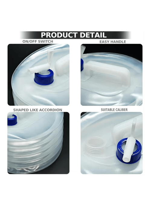 - Food Grade Material- This foldable water container is made of food-grade high-quality environmentally friendly materials. The material is hard, environmentally friendly and safe, and will not affect water quality.