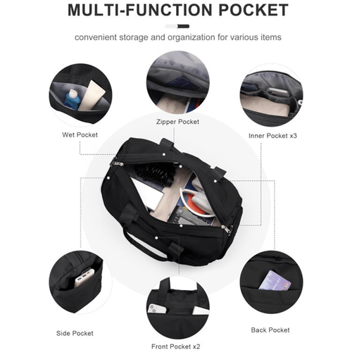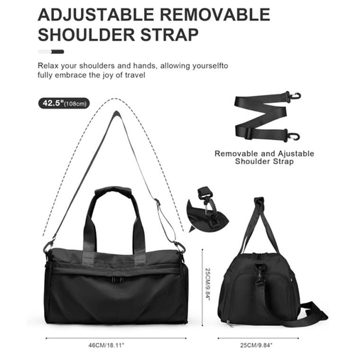 - Shoe Compartment & Wet Pocket- this sport bag comes with shoe compartments on the side and equipped with ventilation holes,shoes can be stored separately from other items. The main compartment has an independent waterproof wet bag that can hold any wet clothes and towels and toiletries.Let you store dry and wet separately.